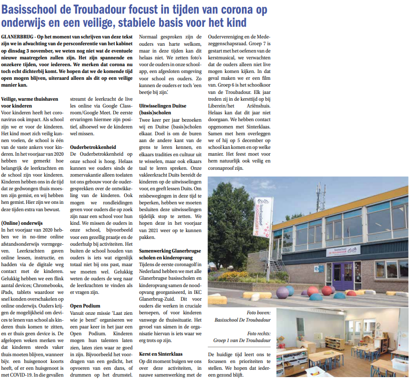 Basisschool de Troubadour zoekt actief het nieuws. Onze school komt buiten de eigen nieuwskanalen geregeld in het nieuws. Het nieuws dat interessant is, wordt op deze site gedeeld.